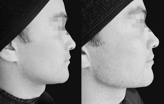 Aplicación precisa de ácido hialurónico a lo largo del borde mandibular para mejorar la definición del rostro y corregir flacidez leve.
